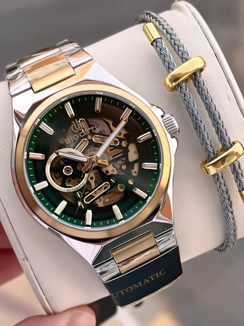 Bigotti Otomatil Ve Kurmalı Kasa Ve Kordon Çelik 5 Atm Su Geçirmez Erkek Kol Saati