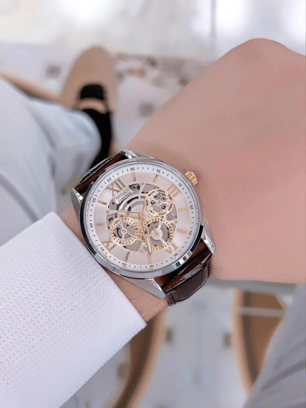 BLKT.2.753 FERRUCCİ TÜM FONKSİYONLARI AKTİF 30MT SUYA DAYANIKLI DERİ KORDONLU ERKEK KOL SAATİ