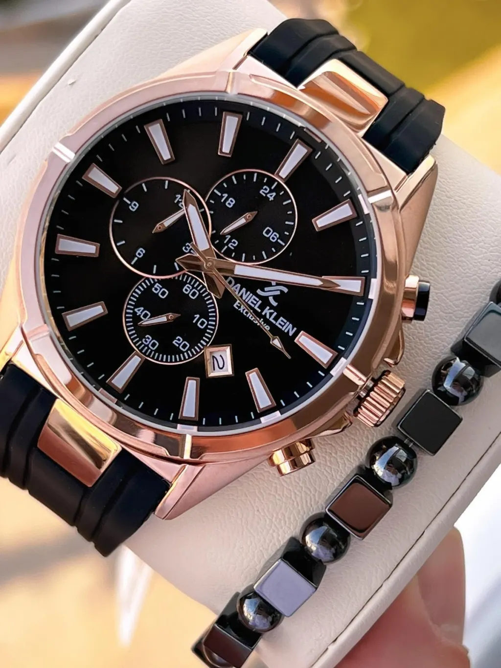 Otomatik Erkek Kol Saati 30 Metre Suya Dayanıklı Silikon Kordon Kararma Renk Atma Yapmaz + Bileklik Hediyeli VS.BLKT.0716