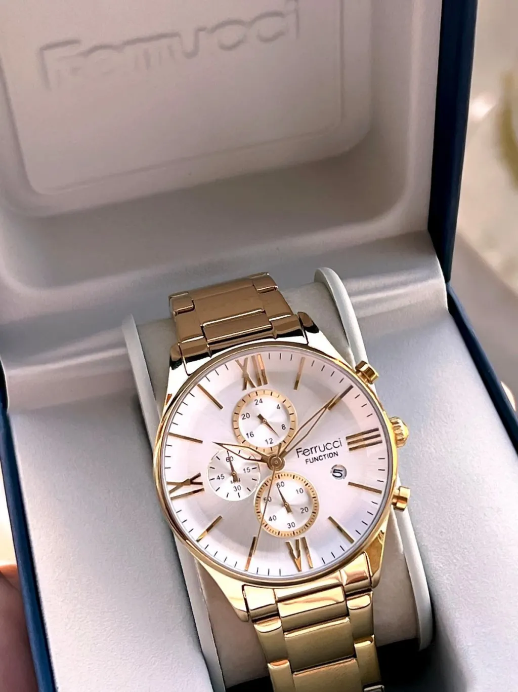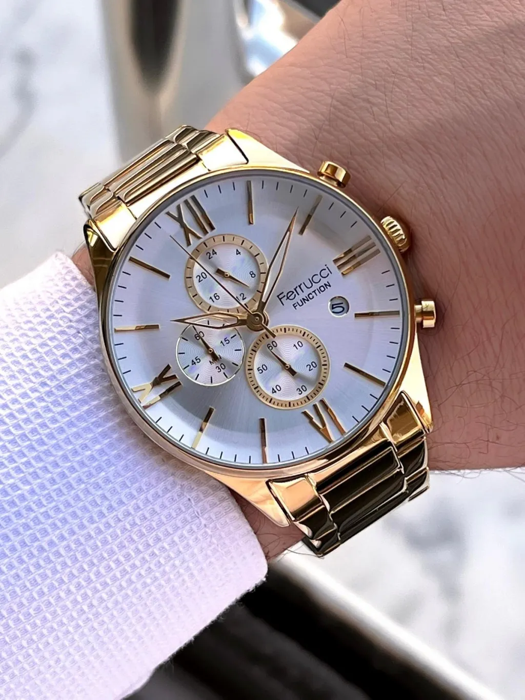 Ferrucci 30 mt Suya Dayanıklı Çelik Kordonlu Kadran Fonksiyonları Aktif Erkek Kol Saati