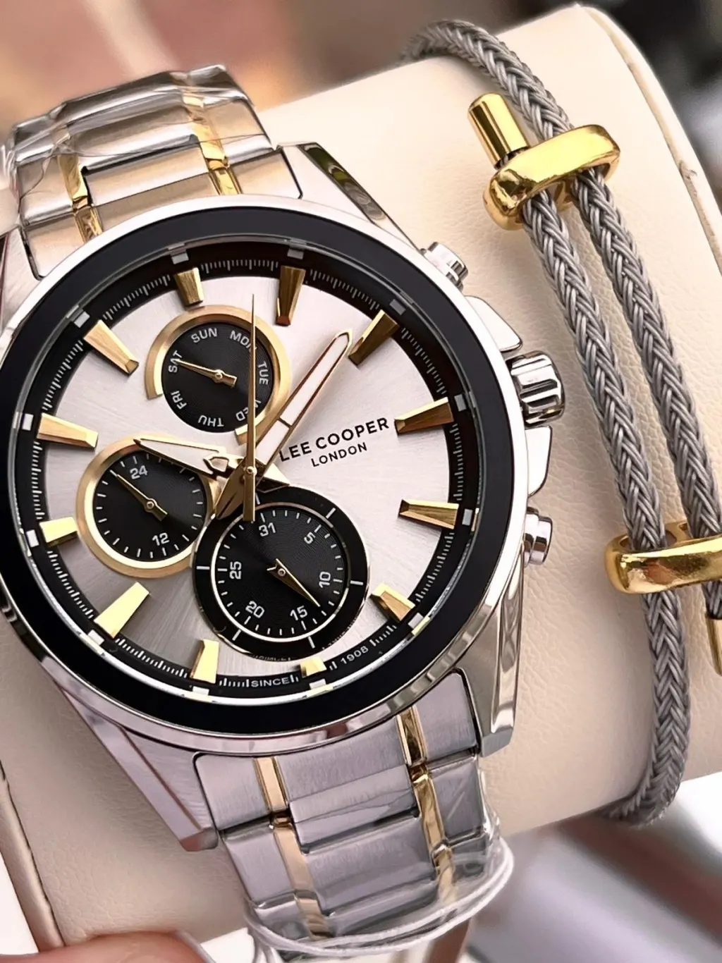 Lee Cooper İtalyan Tasarım Bileklik Hediyeli Premium Tasarım Çelik Kordon 5 Atm Suya Dayanıklı Erkek Kol Saati
