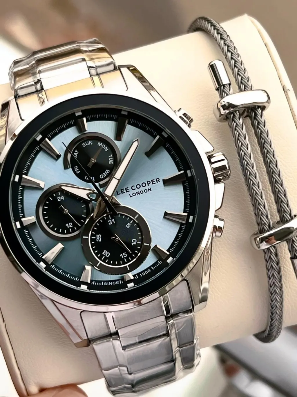 Lee Cooper İtalyan Tasarım Bileklik Hediyeli Premium Tasarım Çelik Kordon 5 Atm Suya Dayanıklı Erkek Kol Saati