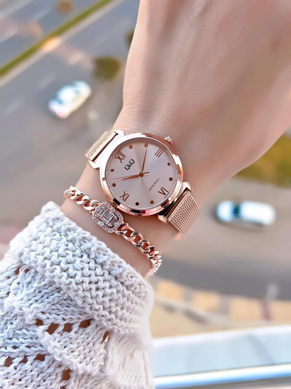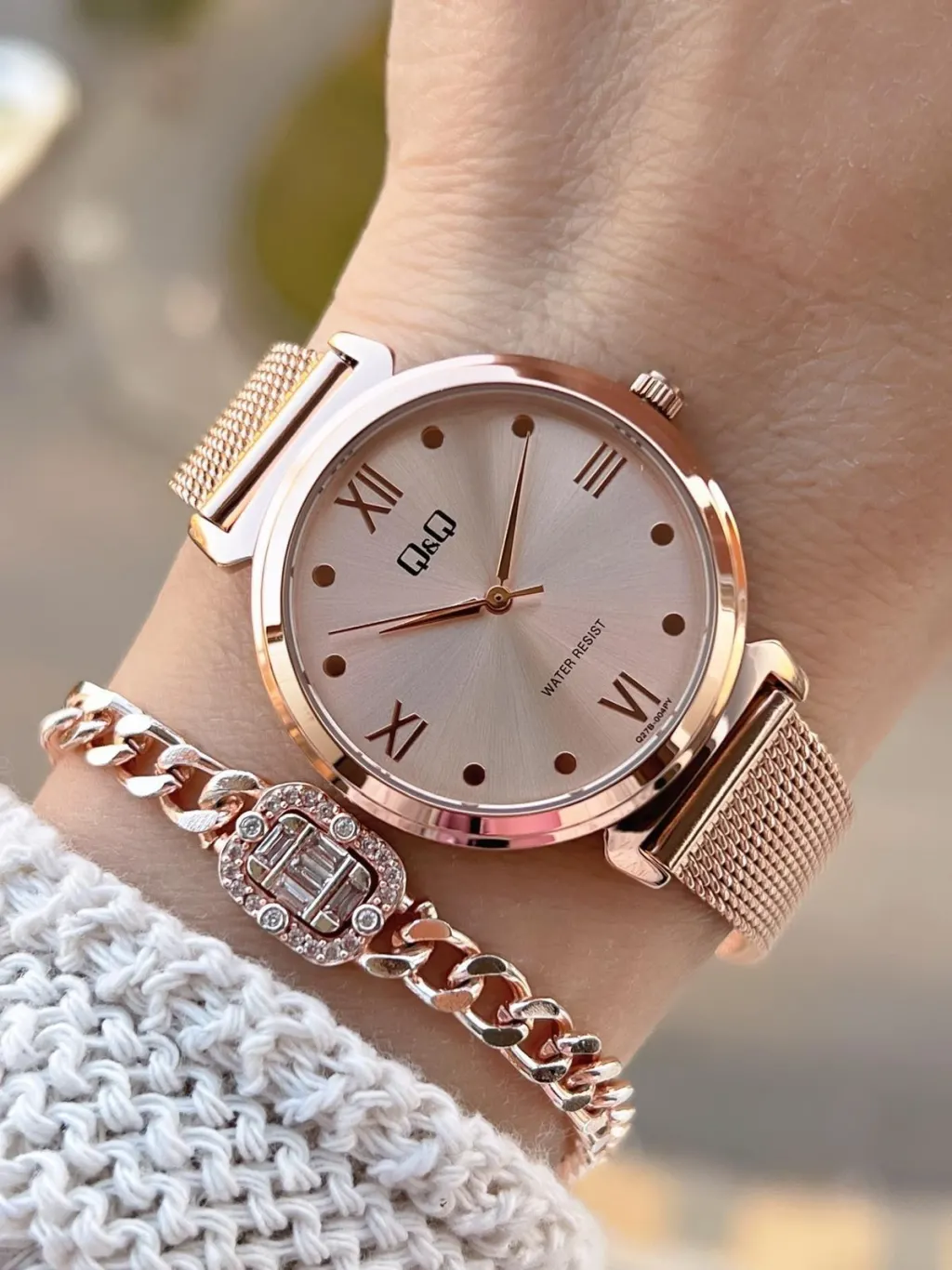Q&Q Çelik Kordon Kararma Renk Atma Yapmaz 3 Atm Suya Dayanıklı Kadın Kol Saati