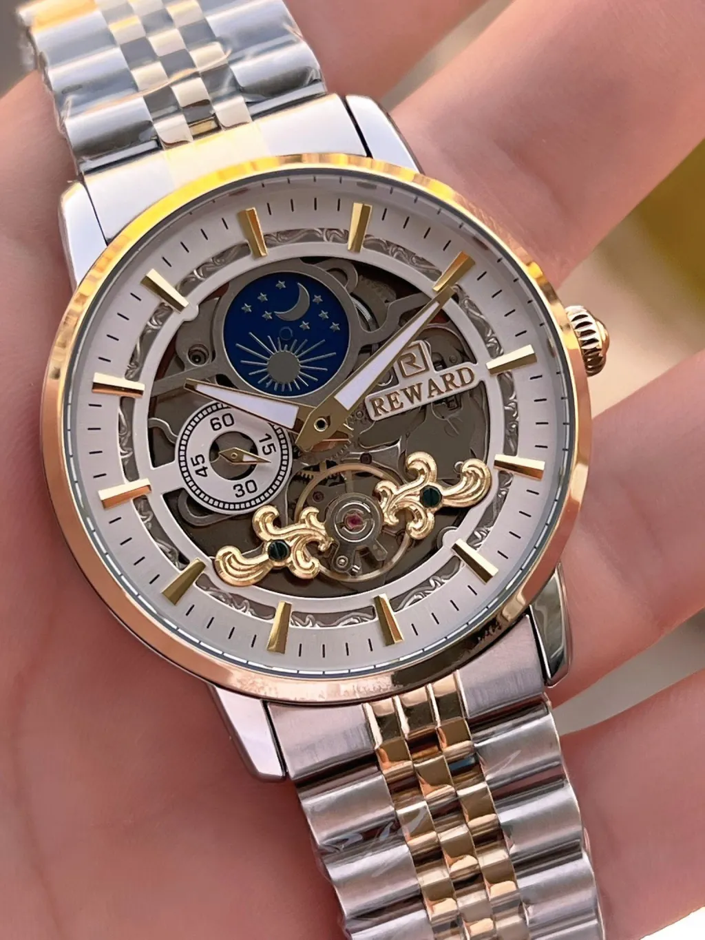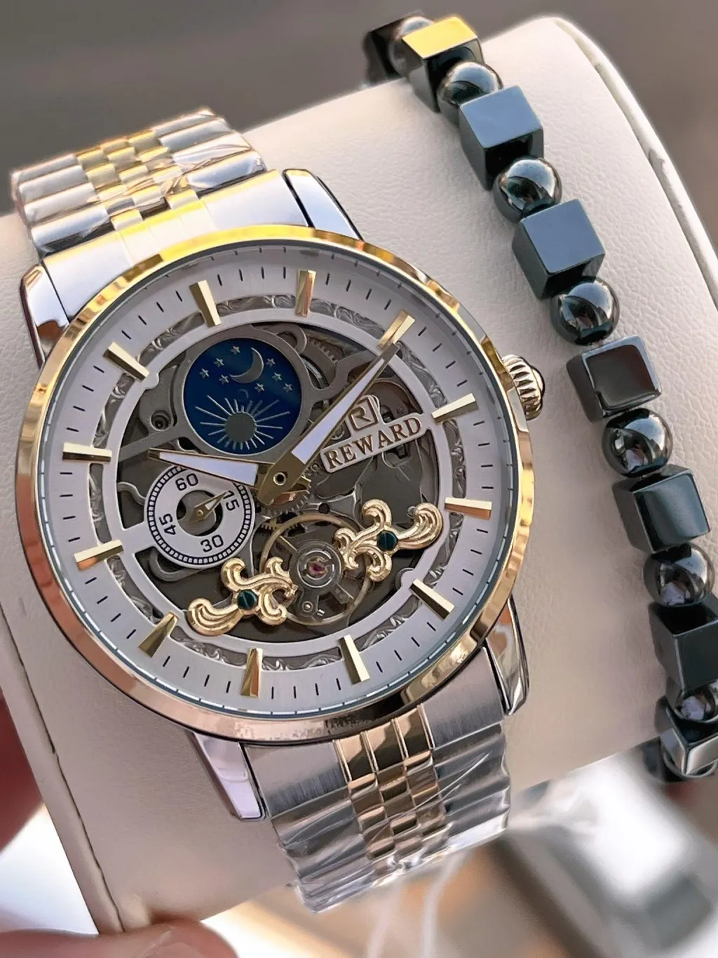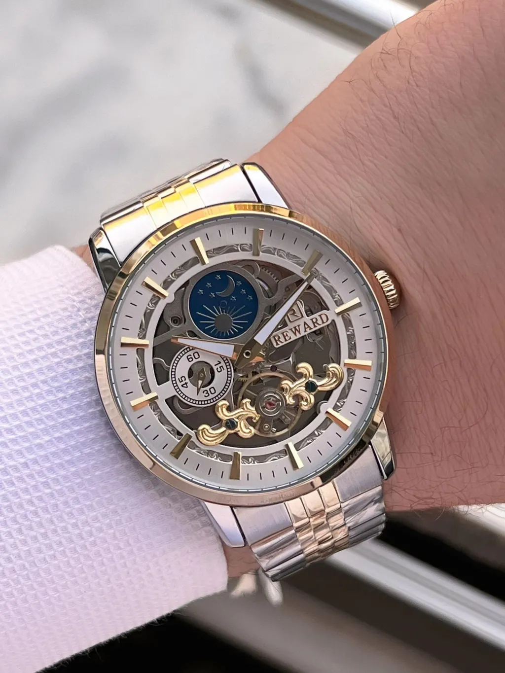 Reward Otomatik Çelik Kordon Gece Ve gündüz Takvimli 5 Atm Suya Dayanıklı Erkek Kol Saat VS.BLKT.0608