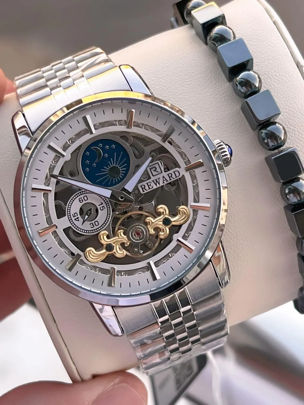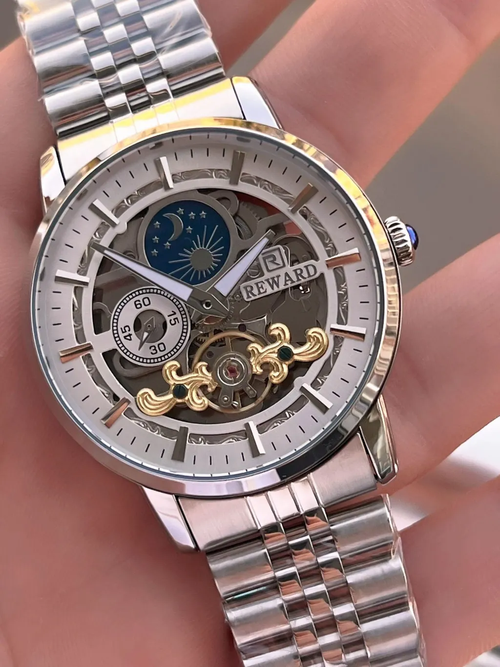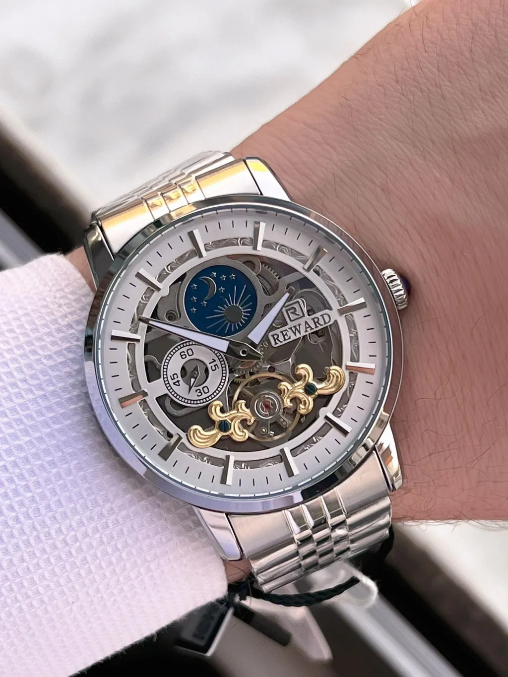 Reward Otomatik Çelik Kordon Gece Ve gündüz Takvimli 5 Atm Suya Dayanıklı Erkek Kol Saat VS.BLKT.0609