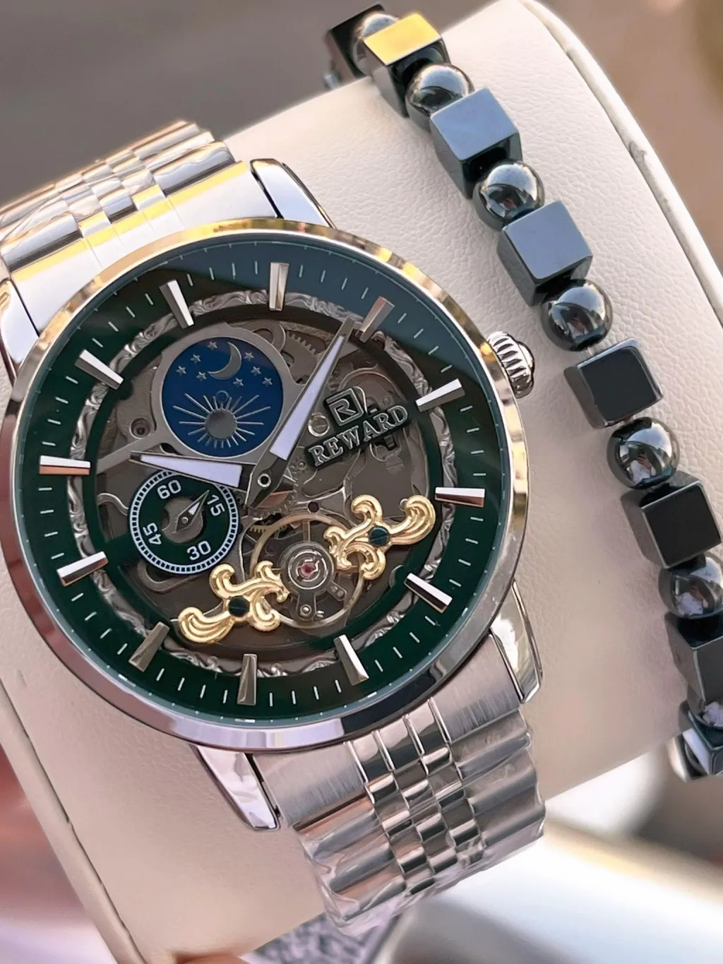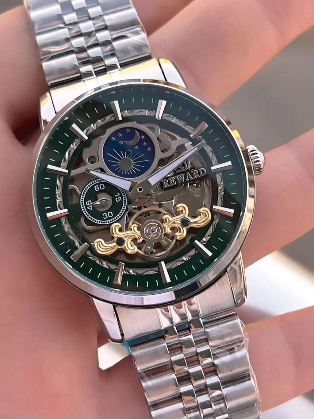 Reward Otomatik Çelik Kordon Gece Ve gündüz Takvimli 5 Atm Suya Dayanıklı Erkek Kol Saat VS.BLKT.0613