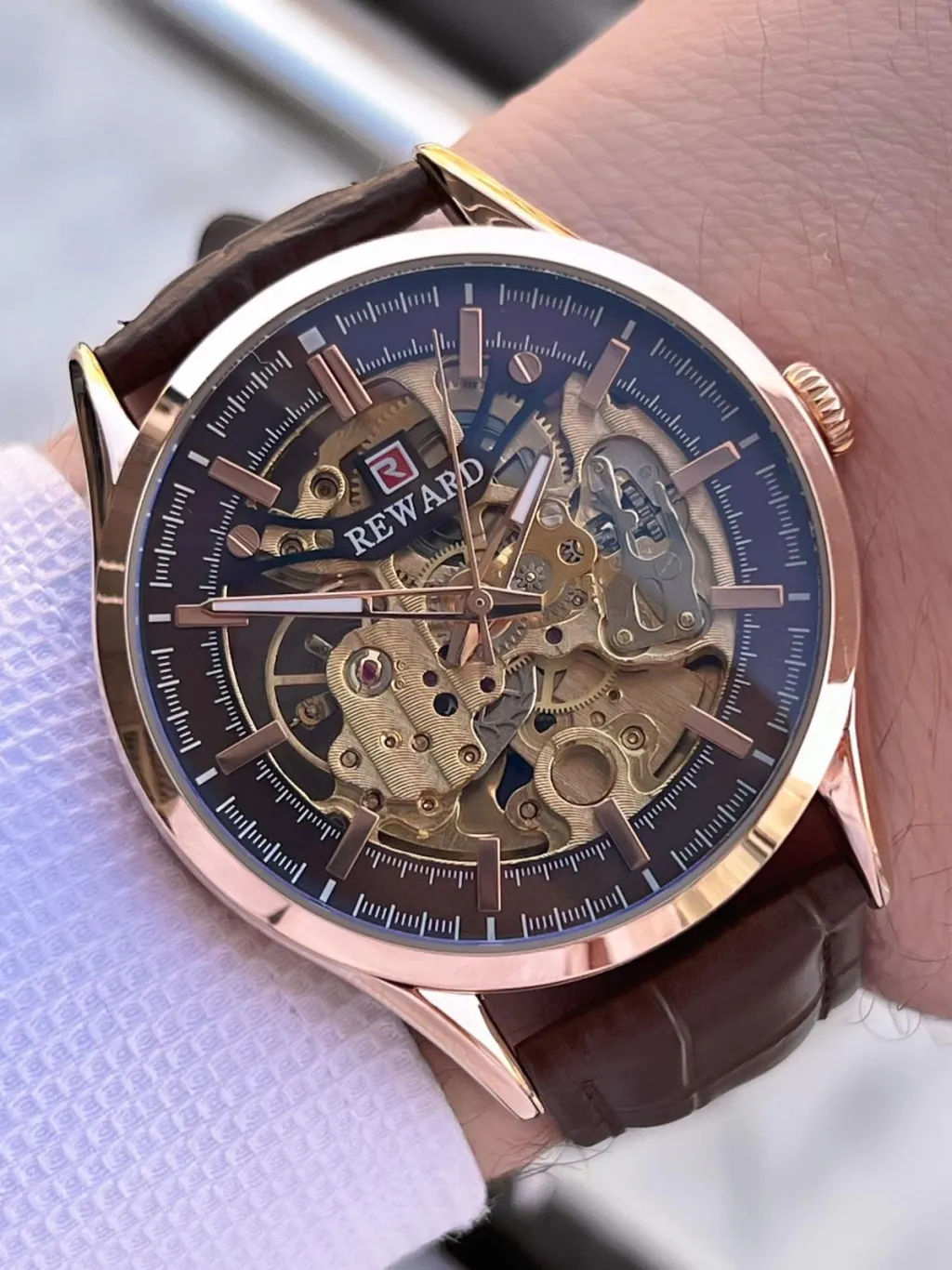 Reward Otomatik Deri Kordon 5 Atm Suya Dayanıklı Erkek Kol Saati VS.BLKT.0616