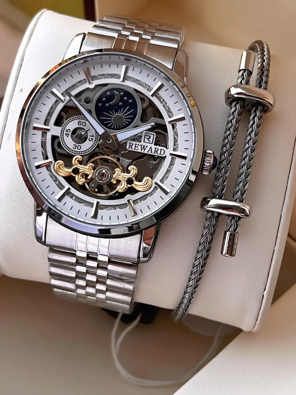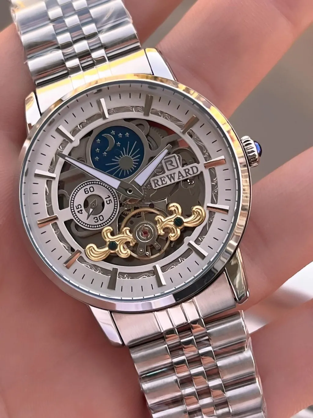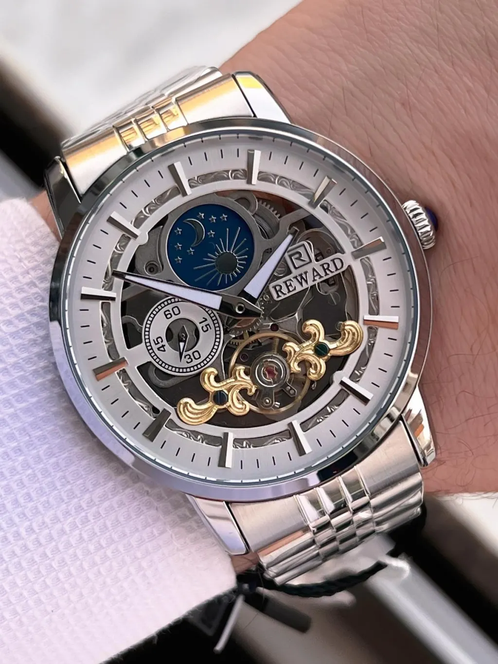 REWARD ÖZEL TASARIM OTOMATİK MEKANİZMA ÇELİK KORDON 5 ATM SUYA DAYAKNIKLI ERKEK KOL SAATİ W.14626.2