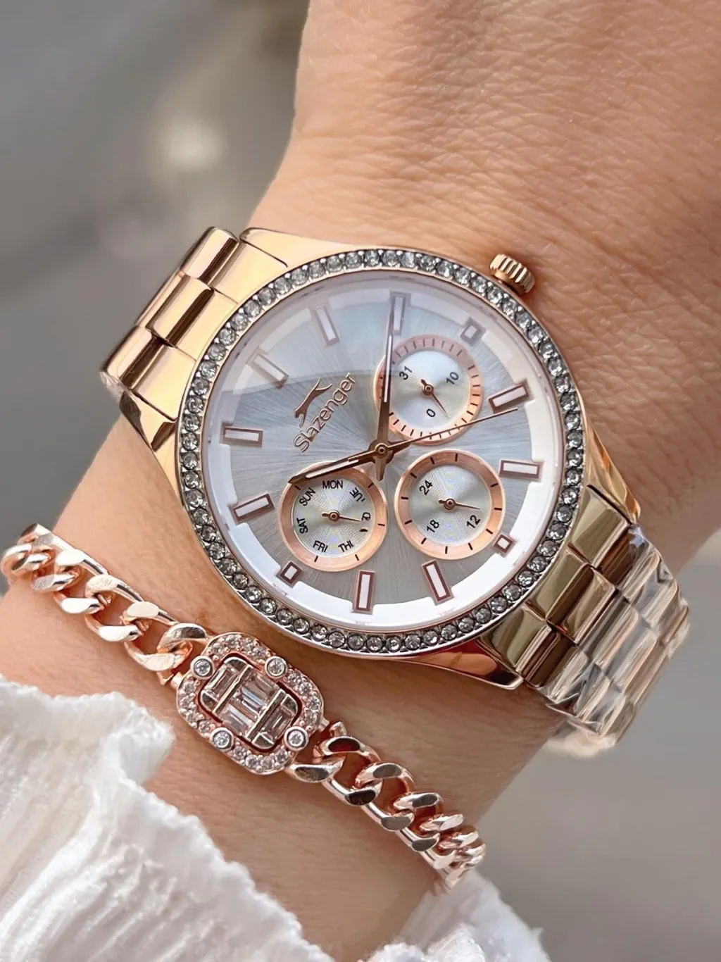 Slazenger Çelik  Kordon 50 Mt Suya Dayanıklı 2 Yıl Garantili + Bileklik Hediyeli Spor Kadın Kol Saati