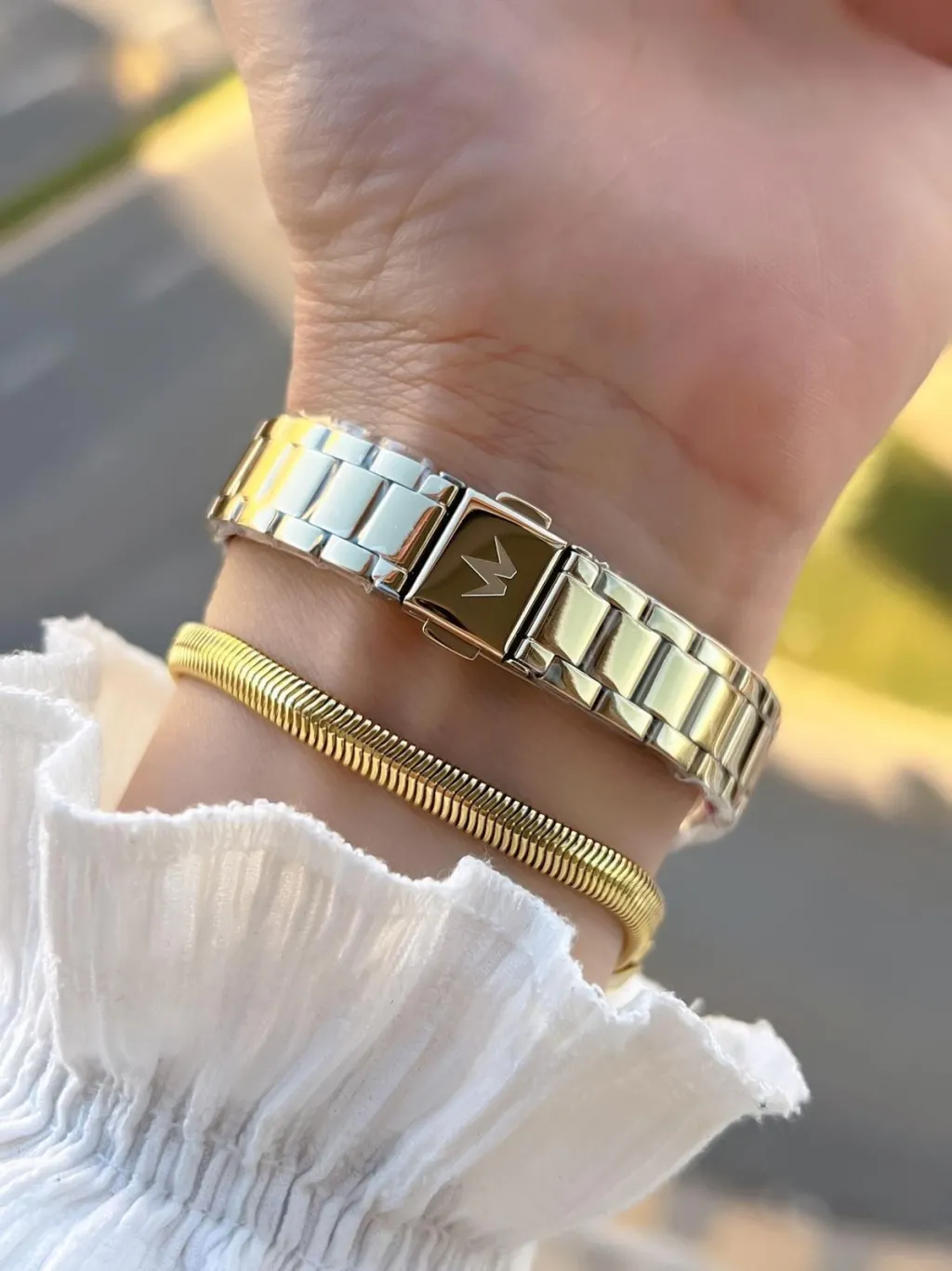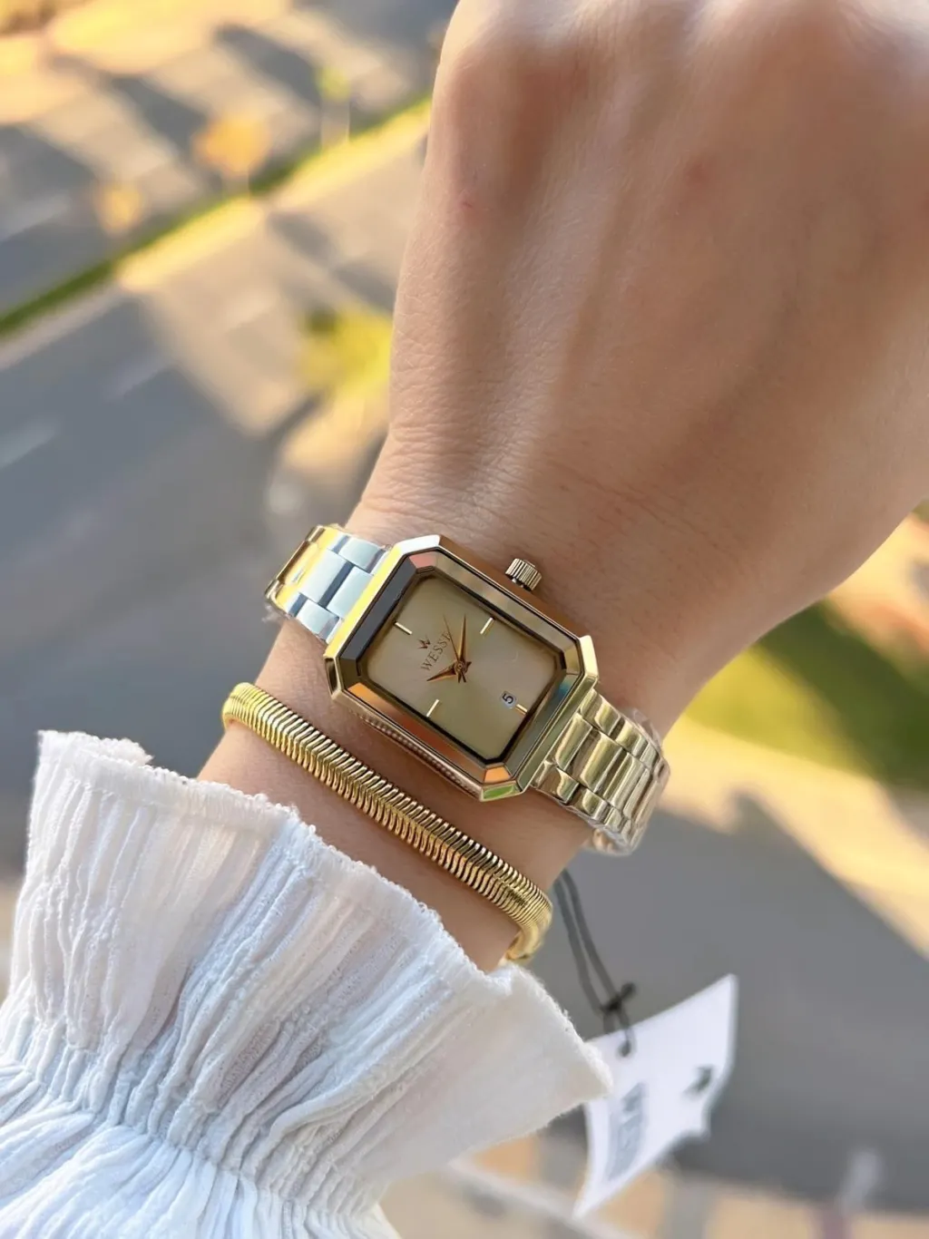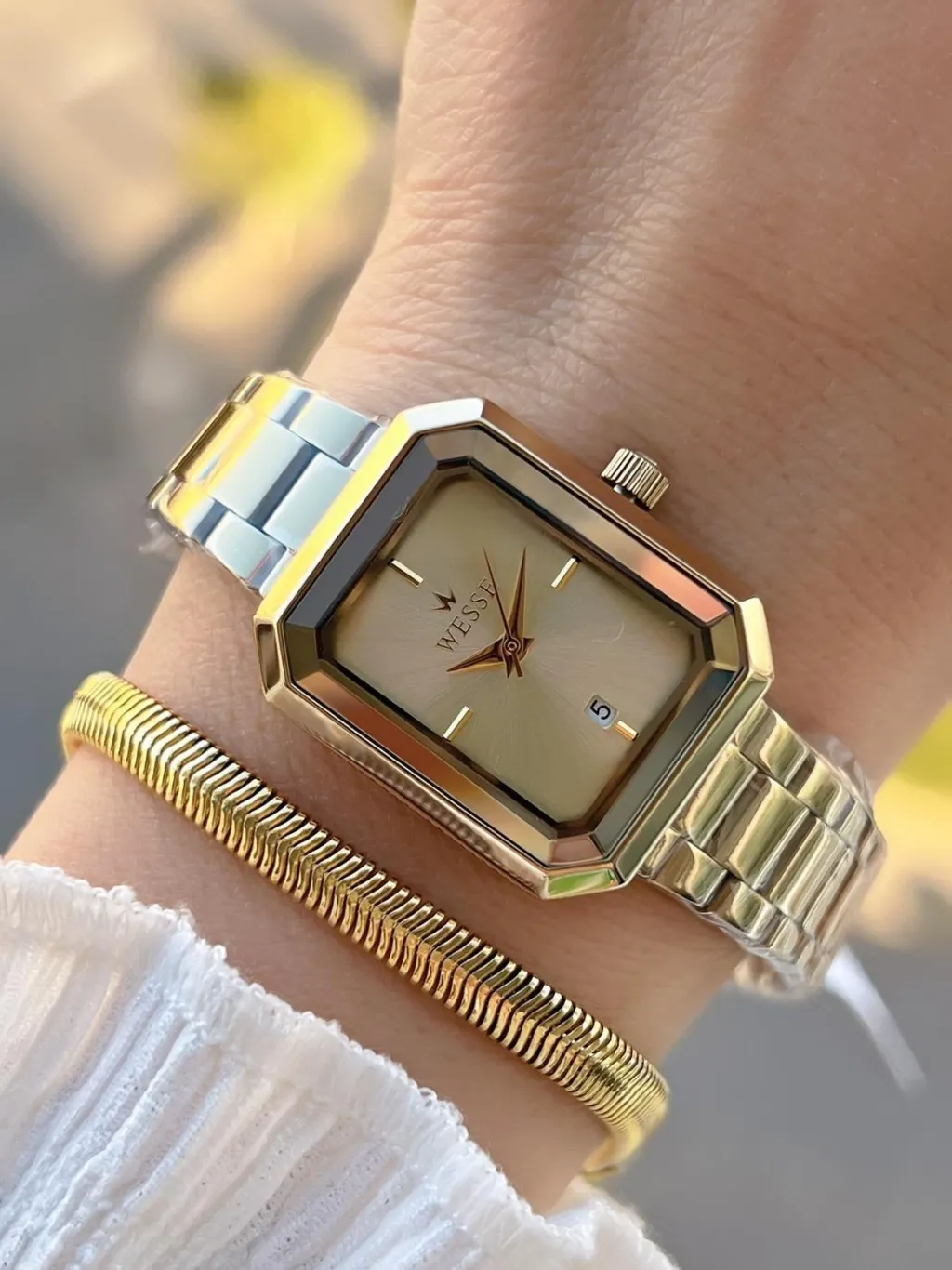 WESSE Takvimli Kadran Çelik Kordon 5 Atm Suya Dayanıklı Kadın Kol Saati+Bileklik
